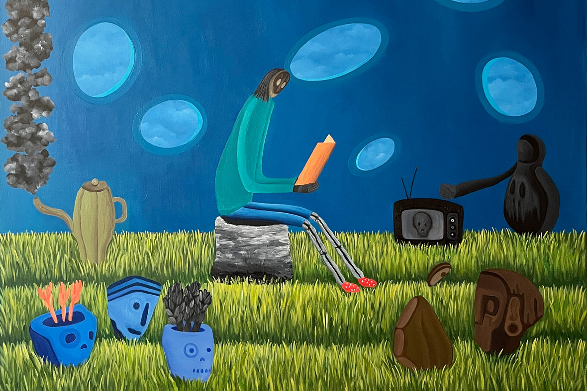 «Кажется, я где-то это видел», — говорит зритель, проходя вдоль работ. И это ощущение не случайно: работы художника, как сон — напоминают то, что мы уже знали, но забыли. Чтобы уснуть, сосчитайте до ста. Раз, два, три — и вы уже внутри.
